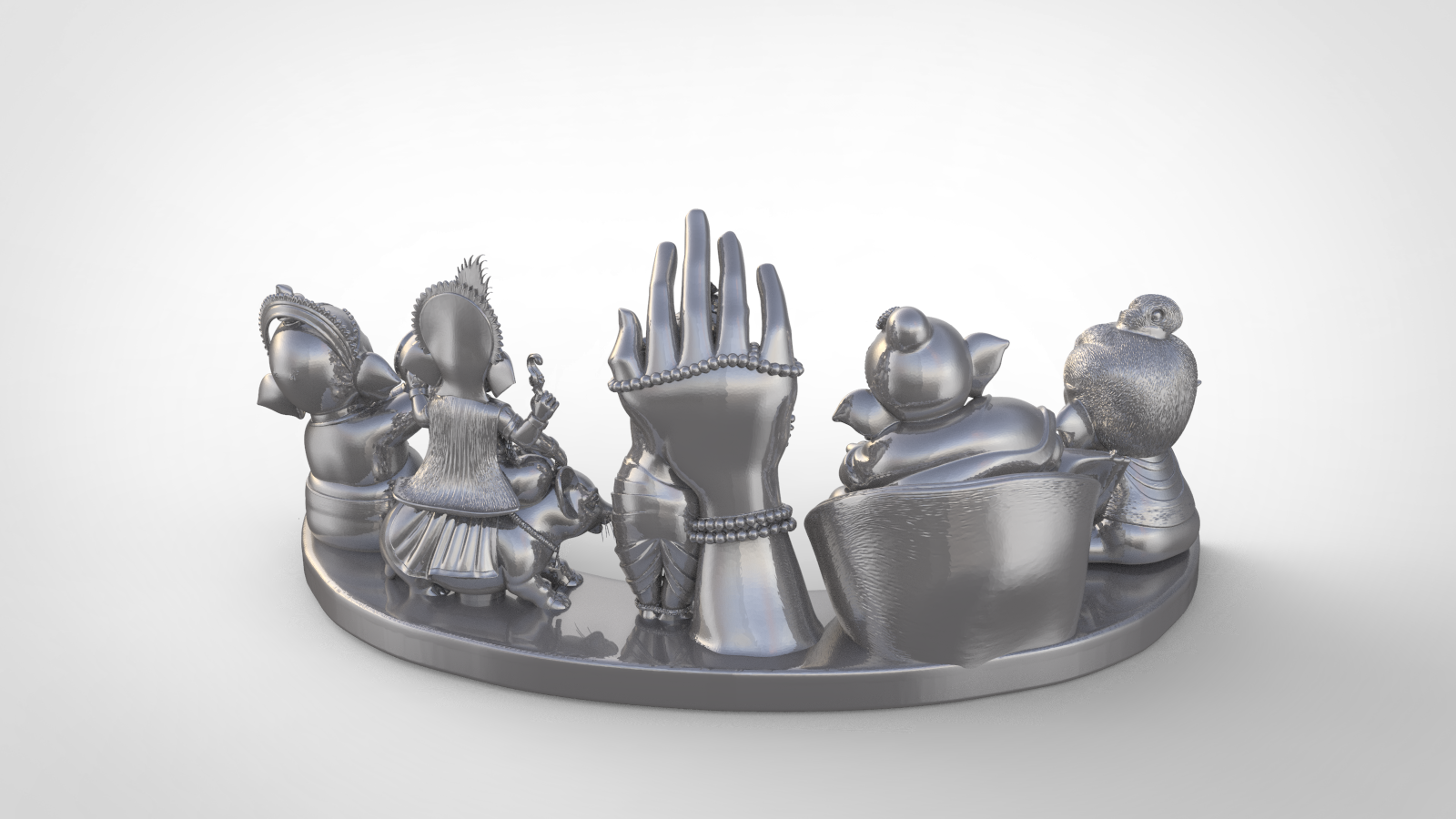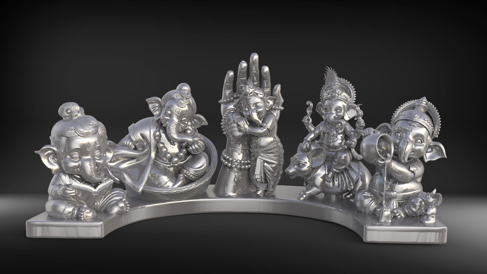 This 3D‑printed Ganpati Panchdev idol brings together Lord Ganesha with four other principal deities, representing the traditional Panchdev worship of five gods in one sacred form. In Hindu belief, Panchdev upasana honours Ganesha, Shiva, Vishnu, Shakti and Surya as different aspects of the same supreme divinity, making this piece a powerful symbol of balance, protection and prosperity in daily life.